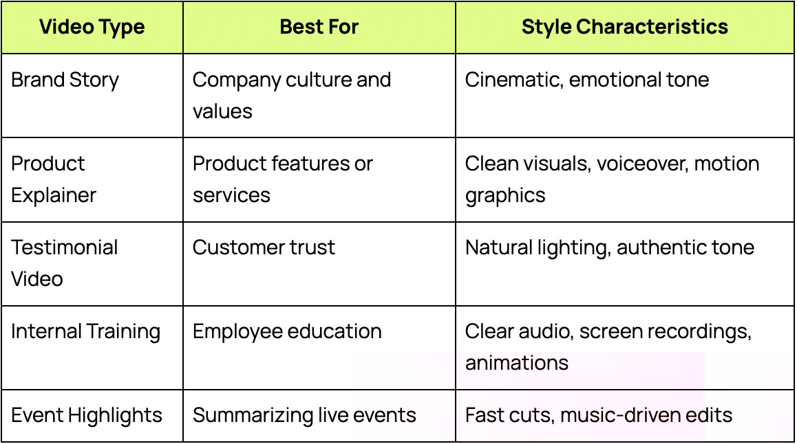 - Brand alignment: A polished video communicates professionalism and consistency.