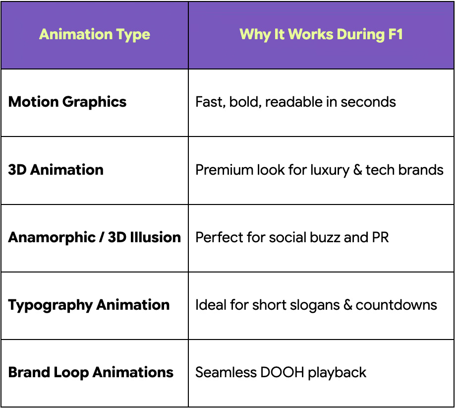 Yes. Strong F1 campaigns often start with a master animation, then adapt it for DOOH, social, and digital ads.