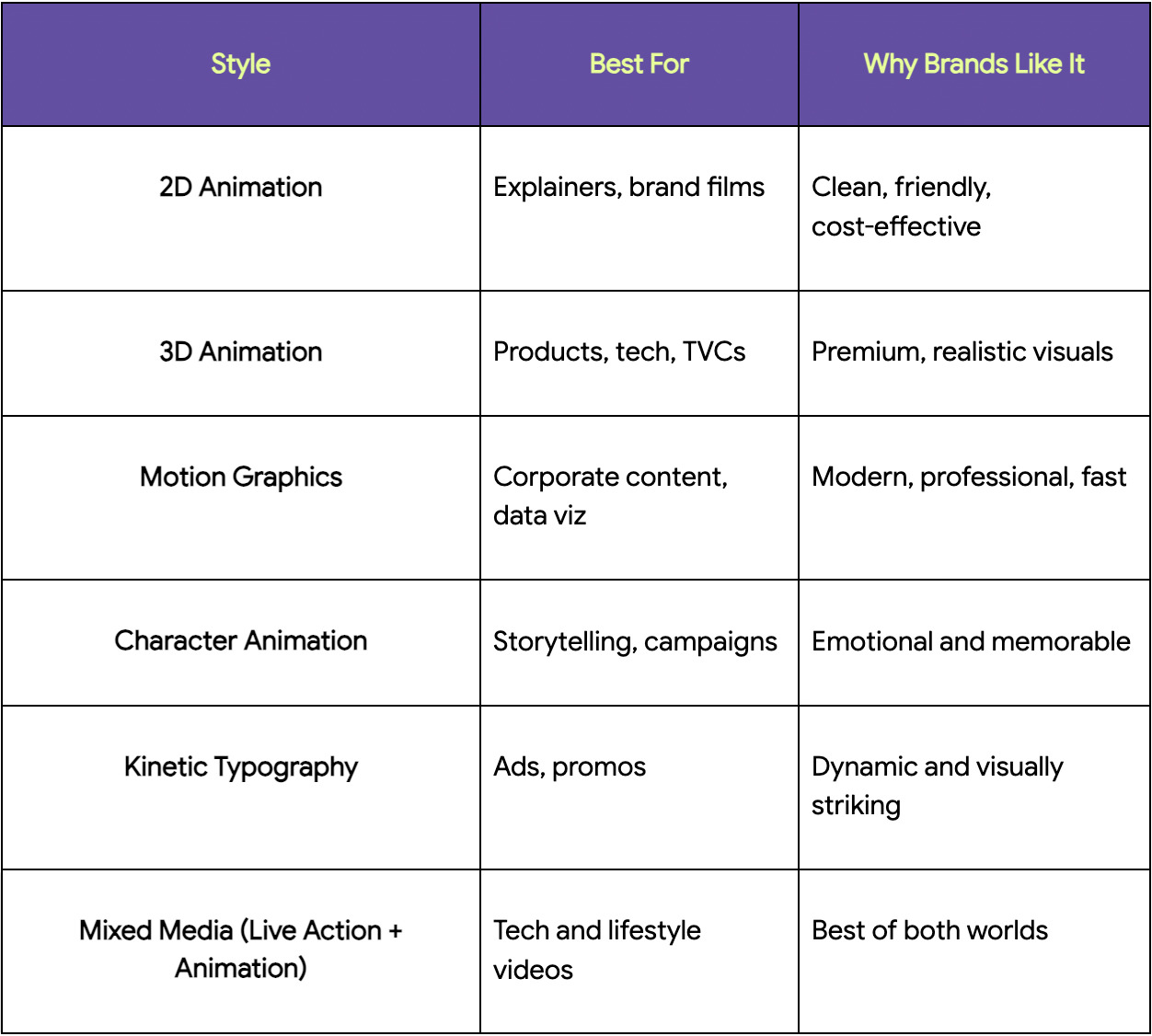 Brands using animation for storytelling, ads, onboarding, training, product demos, and social media.